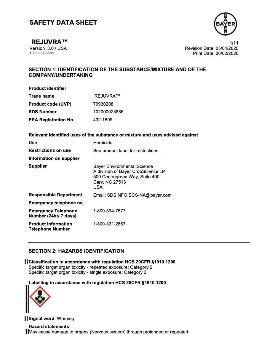 Click on the images below to download the “SDS” or Safety Data Sheets (previously called Material Safety Data Sheets MSDS) for the indaziflam products Boulder County is using on our open space lands. SDS’s provide information on substance hazards, safe handling, emergency procedures, storage, environmental impacts, PPE requirements, etc. The format and symbols of these sheets have been globally standardized in something called the Globally Harmonized System (GHS).